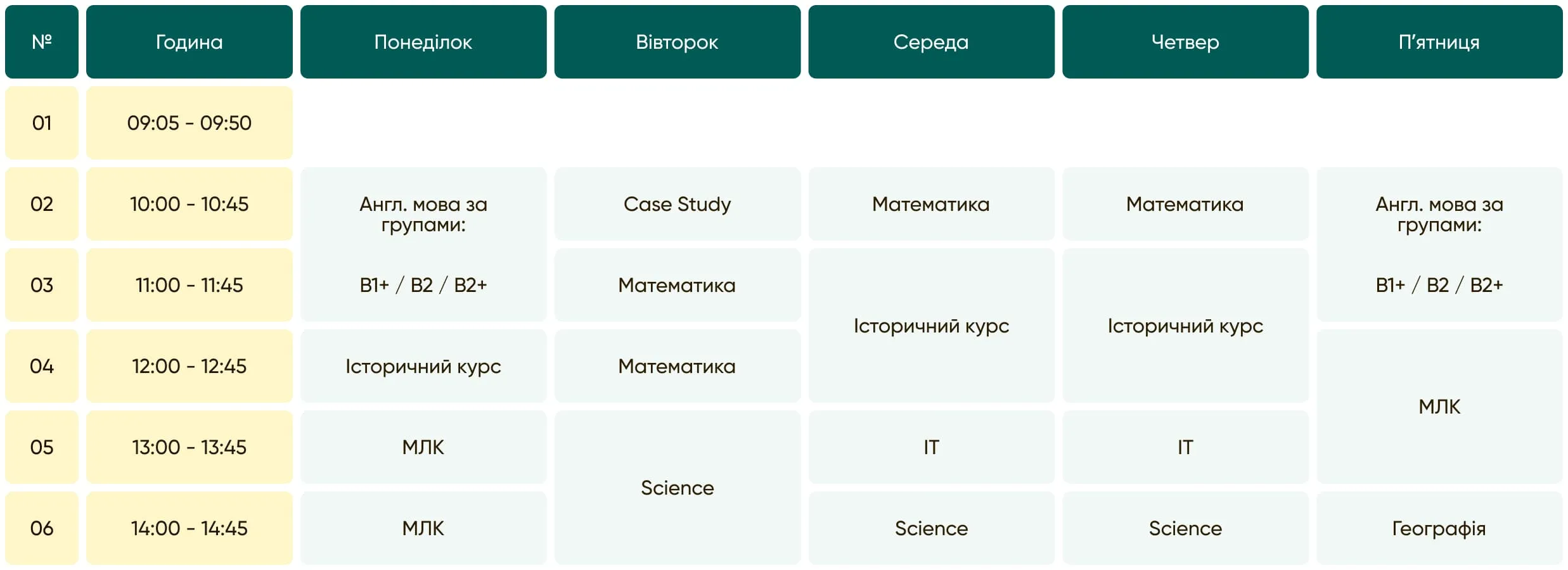 Онлайн-школа об’єднує учнів із різних міст: ми проводимо групові заняття, клуби за інтересами, командні проєкти й події, де кожен може проявити себе.